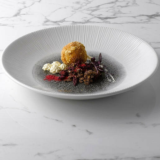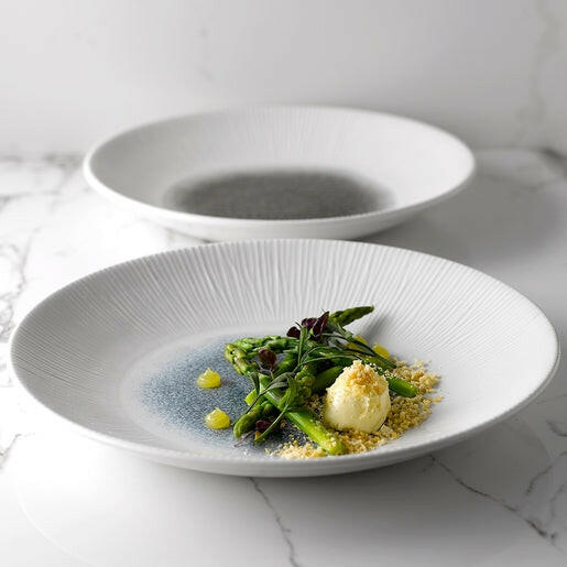 Churchill Studio Prints Raku is inspired by the traditional glazing process but acquires its reactive glaze through printing. The print is positioned directly under the glaze to create a protective layer. Each piece of Churchill Studio Prints Raku is truly unique, emulating an artisan glaze but with all the durability required for hospitality.
